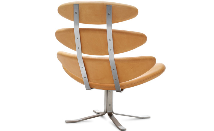 Poul M. Volther 于1964年的设计的王冠躺椅家具系列,是Poul M. Volther最知名的现代家具设计作品,此系列包括Corona Lounger Chair(王冠躺椅)、Corona Lounger Ottoman (王冠休闲脚踏)及其组合Corona Lounger Chair and Ottoman(王冠躺椅&脚踏)。历经40余年的今天,其作品在纷繁现代家具设计中仍占有一席之地。椅子充满了雕塑感,斯堪德维亚风格的简洁外形和舒适的坐感都是这张椅子成为创世之作的原因,四个椭圆形组成一张独特的椅子,无论摆放在哪,都令人过目不忘。此系列家具采用高强度钢材制作,表面电镀处理,外面为真皮或布艺制作,可360度旋转,不可后仰。适用范围广,酒店、会所、高档餐厅、夜总会、别墅等。