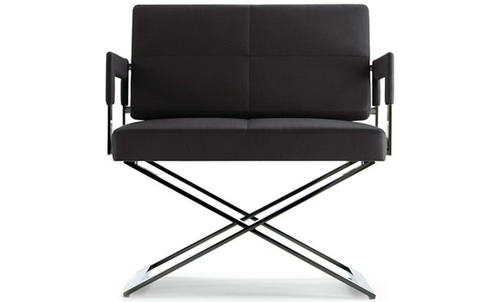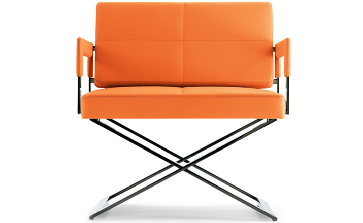 "Leather皮革椅系列家具线条干净简明,“X”交叉造型或者“H”造型脚架支撑着坐垫,新颖独特,由Jean-Marie Massaud设计。它采用外露的金属架,有三种不同的做工,座椅为聚氨酯泡沫材料,靠背较低,坐垫宽敞。有两种面料可供选择:天然皮革和纺织面料。两种款式都有皮革和染色纺织面料的扶手和同款的靠枕。沙发椅的造型形式严谨,它的特点和个性特征与Poltrona Frau现代室内家居的设计非常统一协调。