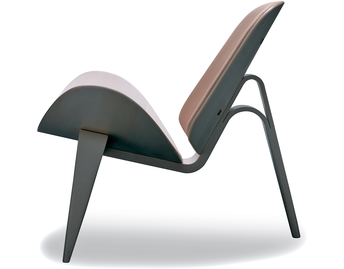 Wegner shell chair(三脚休闲椅)是由Hans J. Wegner设计的,椅子一共有三个脚,座椅像一个笑脸,又像胡子,设计师给他的编号为:CH07,外形现代、美观、独特,既可以有来看书读报,也可以用来休闲娱乐,成了20世纪最佳的设计之一。