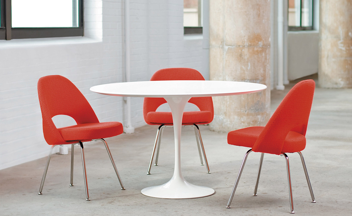 Tulip Dining Table(郁金香餐桌)是芬兰裔美国设计师Eero Saarinen在1956年设计的作品。优雅、清秀的桌脚配上天然的大理石桌面,极简却又完美。Tulip Dining Table(郁金香餐桌)是现代餐桌的代表作,作为家庭中使用餐桌、高档饭店中的餐桌和酒店中使用的餐桌都非常合适。作为著名家具设计师设计的作品设计品位自然不会低,这种餐桌设计出来的时候就被广泛的运用到了饭店、酒店和家庭中,成为当时最热销的餐桌之一,餐桌主要材料是玻璃钢(可选大理石),整张桌子是采用一次成型,中途不会出现裂缝,有质量保障,桌面平滑不会凹凸。