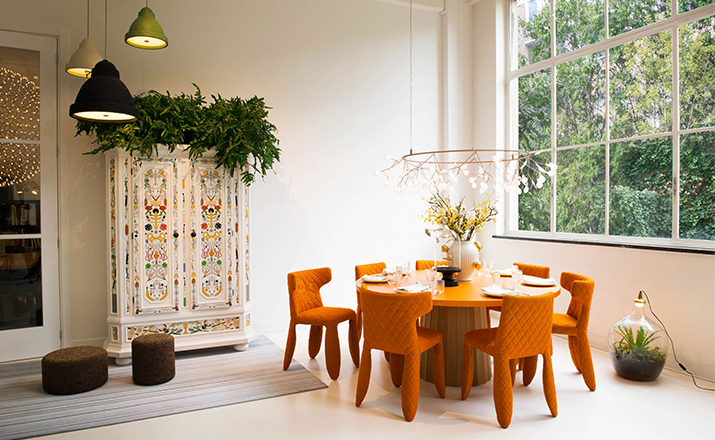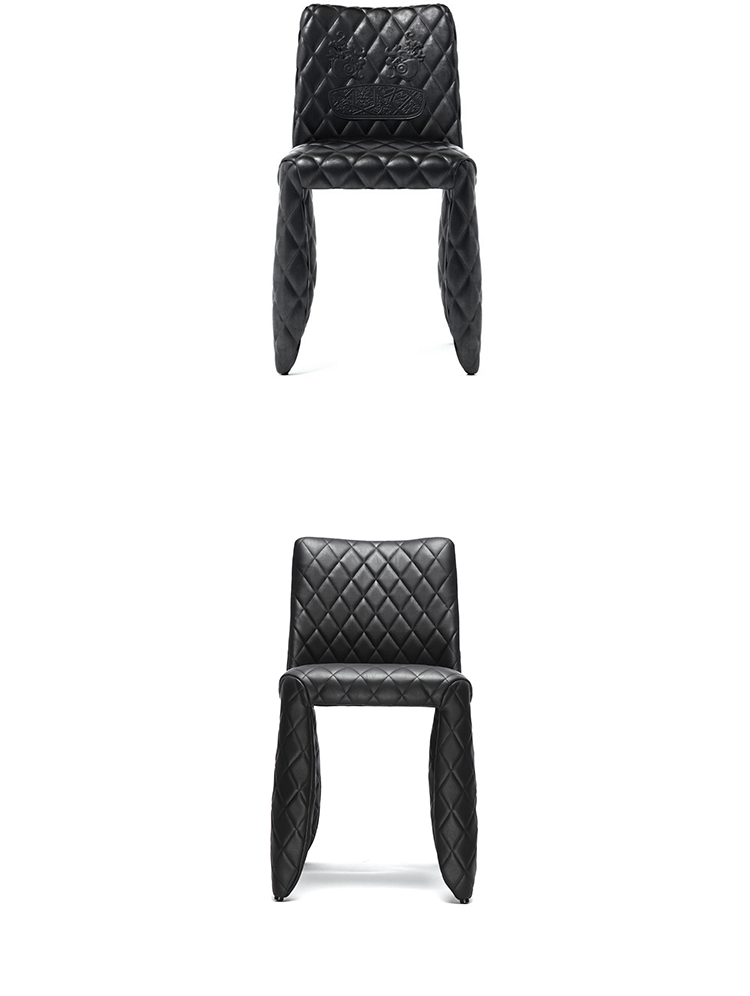 "A soft, puffy and stylish chair with an optional monster face embroidered on the backrest.The monster is a symbol of the eternal battle between opposite forces that take place in life and can be easily recognized inside ourselves,if we have the courage to open our eyes.Scary? Not at all! You forget about the monster once you sit down and enjoy the chair's comfort and softness.Marcel Wanders grew up in Boxtel, the Netherlands and graduated cum laude from the School of the Arts Arnhem in 1988.His fame started with the iconic Knotted Chair in 1996.He is now designing for the biggest European contemporary design manufacturers including Moooi of which he is also art director and co-owner.He works on architectural,interior design and consumer home appliances.His designs have been selected for the most important design collections and exhibitions around the world.Monster chair is offered with a synthetic leather upholstery in black.The chairs can be ordered with or without monster face and with or without armrests.The monster embroidery is identical in both versions."
