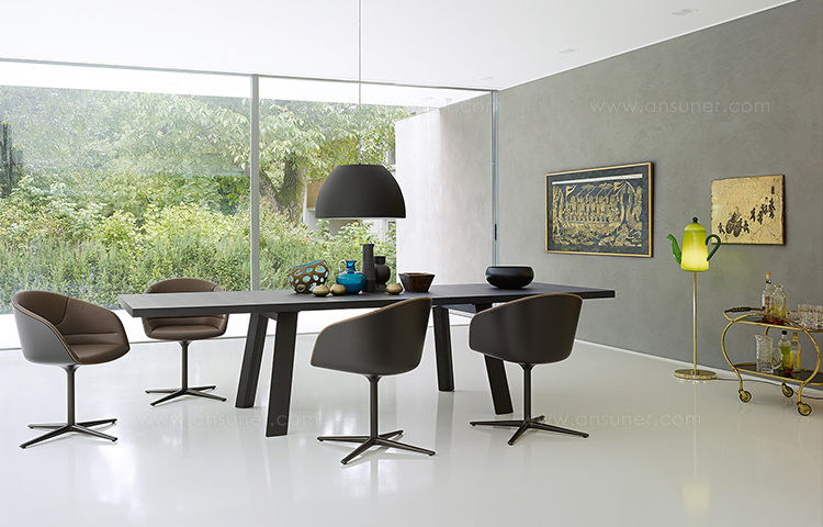 斗式座椅是真正的多面手,适用于休闲、用餐、办公和会议。同时又有一个五星脚轮提供了一种新的选择。