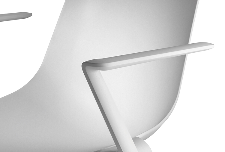 无论这把椅子是否有扶手,具有独特三维座椅外壳的框架结构看起来都是无缝的。