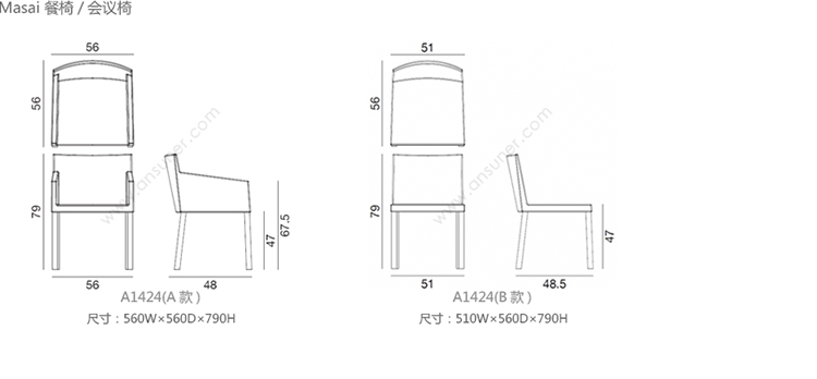 Masai 餐椅/会议椅 系列尺寸/示意图