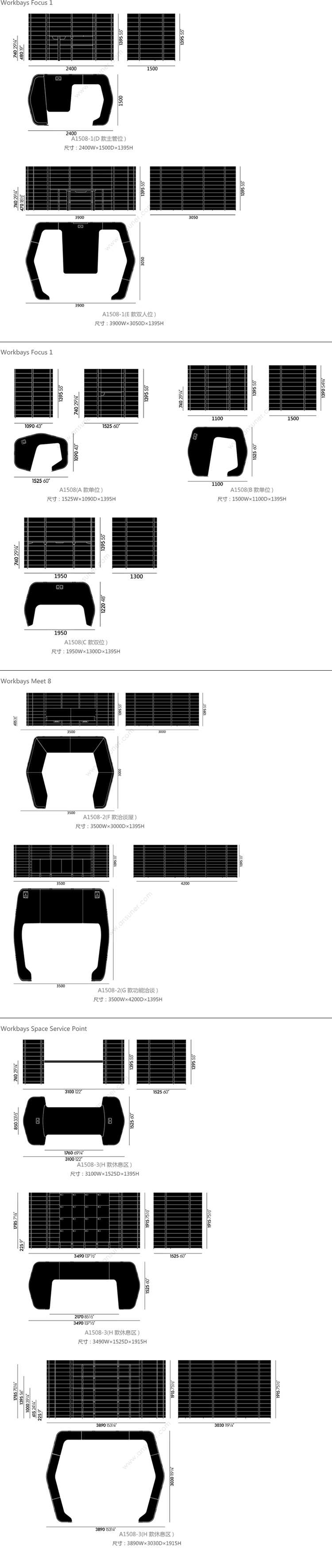 Workbays Focus 1 系列尺寸/示意图