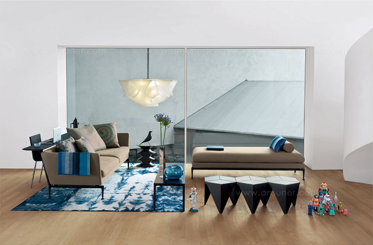 The basic elements of the Suita system can be used individually, or they can be mixed and matched to suite all kinds of living spaces and furnishing needs. The elegant frames (offered in your choice of polished, black-coated or white-coated aluminum) together with the choice of fabric or leather covers offer individuality in terms of comfort and appearance.