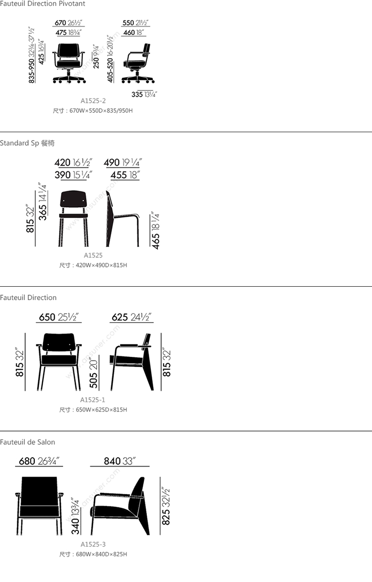 Fauteuil Direction Pivotant 系列尺寸/示意图