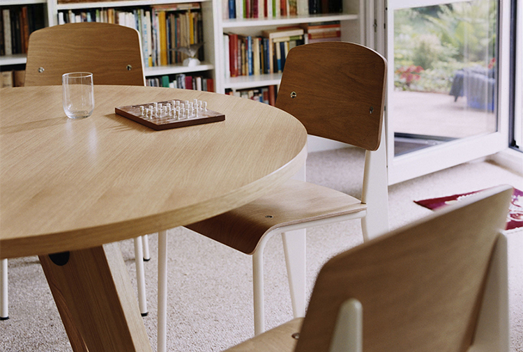 法国设计师兼工程师JeanProuvé于1949年为巴黎大学创建了圆形木制Guéridon桌子。它有两种不同尺寸和各种类型的优质木材。