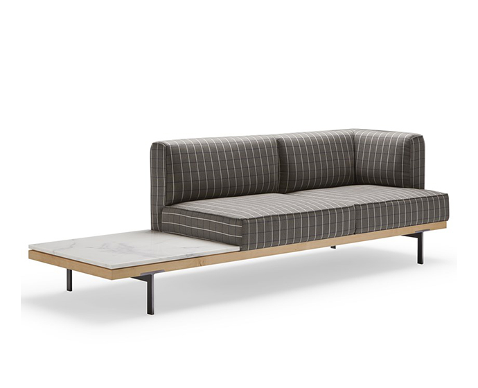 选择,以及不同的桌面。几乎雕塑的腿突出,由于它们插入下部木框架的方式。我们这里有一个多功能的系列,允许在相邻的长凳上以90o或180o的角度进行不同的配置。