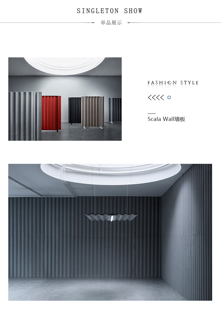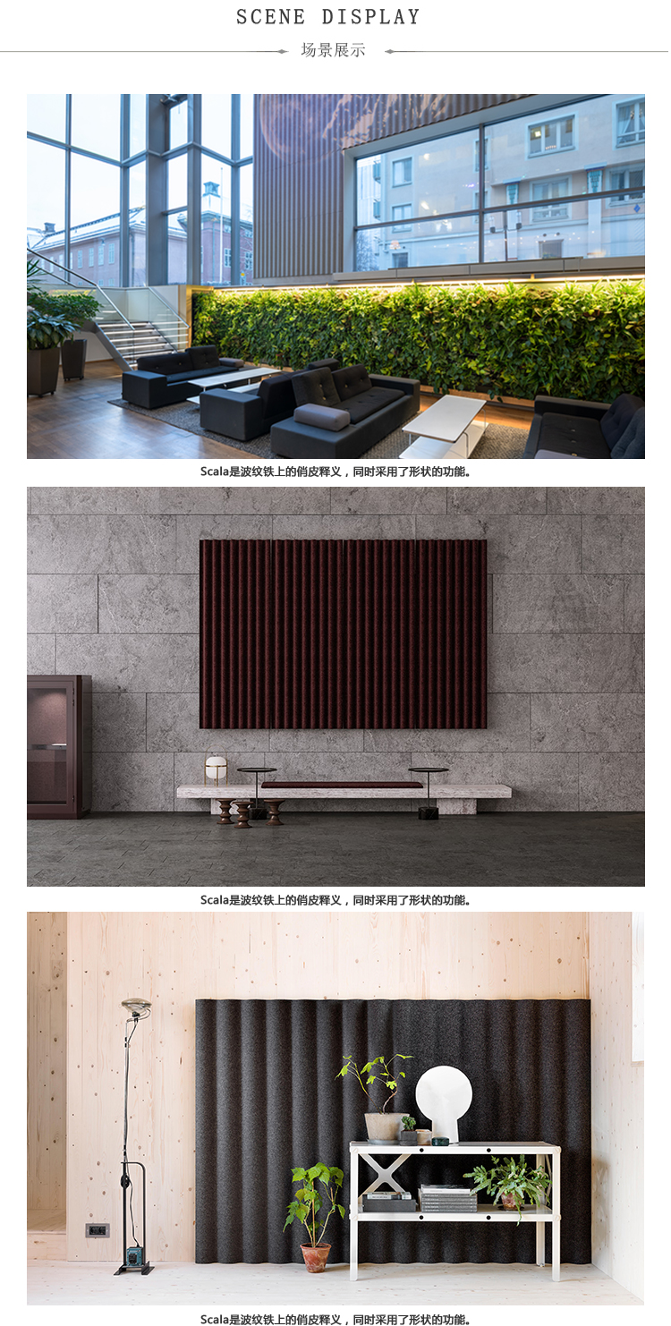 Scala是由Anya Sebton设计的波纹铁的俏皮释义。凭借其波浪形模制毛毡,Scala提供了一种简单而富有想象力的方式来有效降低噪音水平并为空间增添特色。