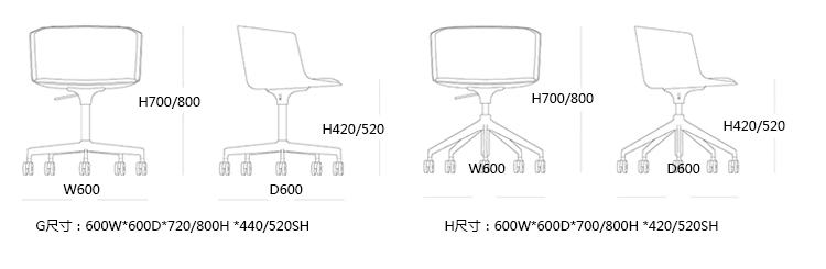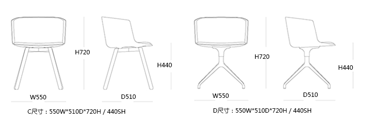 CUT洽谈椅/餐椅 系列尺寸/示意图