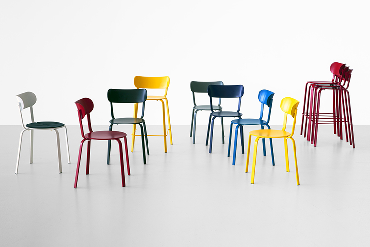 STIL,以其简单的线条,完全由涂漆的金属的,并通过标志性小酒馆椅子的启发,隐藏高度精制的细节,例如隐藏式接头和真正舒适的后弯。