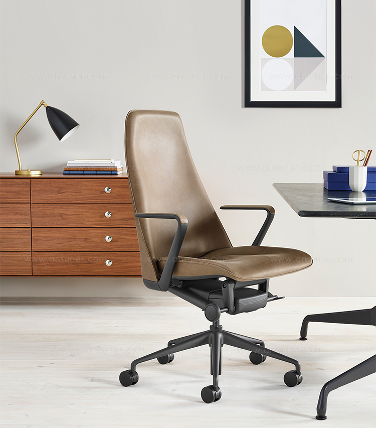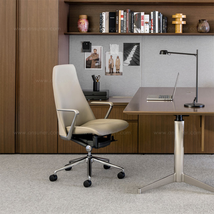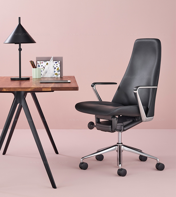 办公椅|现代真皮中班椅|办公家具|设计师家具|锥形大班椅