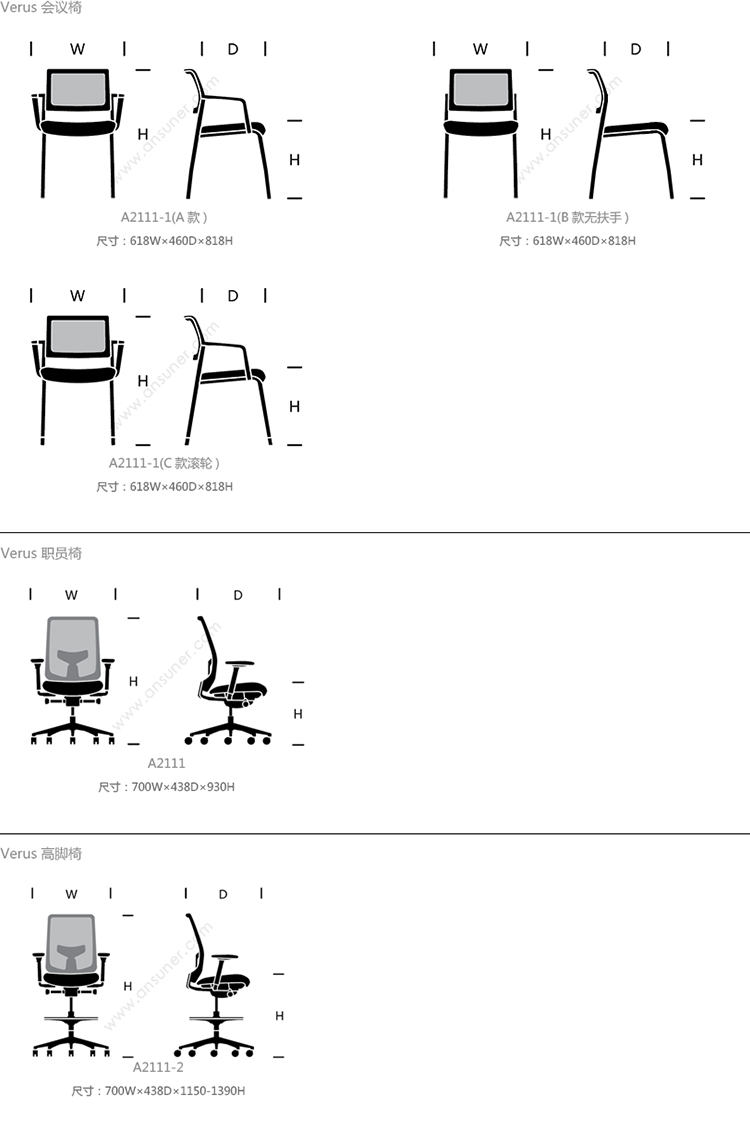 Verus 会议椅 系列尺寸/示意图