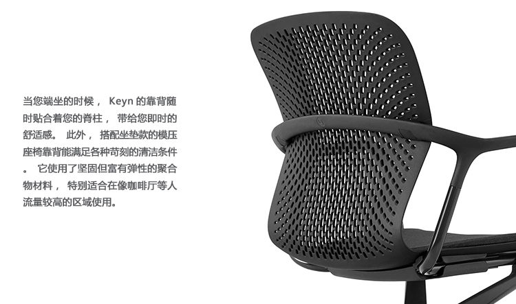 Keyn座椅系列是一套会议和单椅的组合,能为协作式的空间提供响应式的运动机制和即时的舒适感。由伦敦设计团队forpeople设计的这款产品,使用了四个关键部件来创作此系列中的每个型号的产品,所以每款产品都能保持一样的视觉吸引力。Keyn的CradleFlex运动机制能响应姿势的变换,倾仰角度可达10度,能为您带来令人愉悦的舒适感