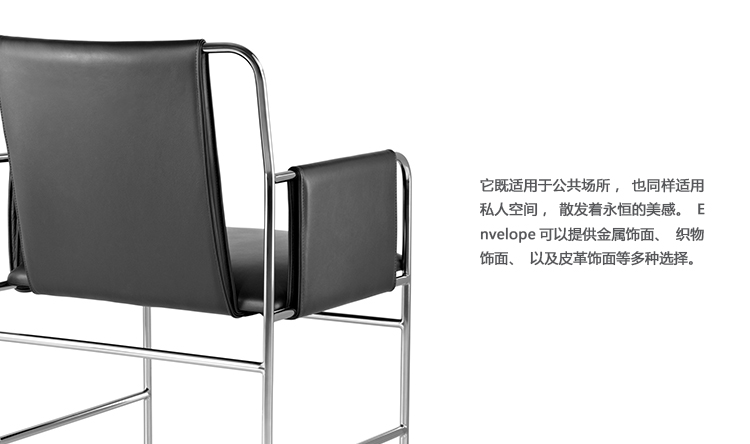 织物包裹将焊接的钢管框架打造成椅面、两侧和椅背。同样,Envelope座椅包围着就坐者。Ward Bennett于1966年设计了这款舒适安心的座椅。至今这款座椅仍然在生产。它既适用于公共场所,也同样适用私人空间,散发着永恒的美感。Envelope可以提供金属饰面、织物饰面、以及皮革饰面等多种选择。