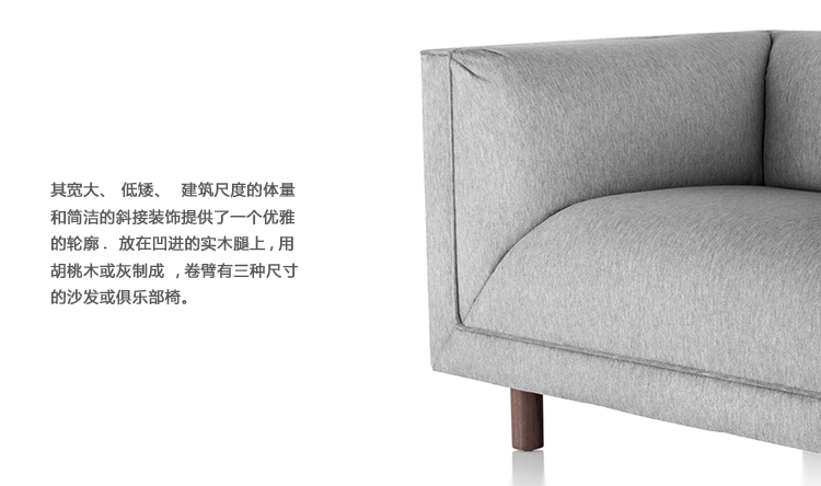 Ward Bennett的作品对追求现代低调奢华的设计师具有深远的影响。他设计的Rolled Arm沙发典雅而又简约,散发出迷人魅力,并可轻松满足家居和商用空间的需求。宽大的矮腿设计具有建筑上的层次感,利落的斜接软垫打造了优雅廓形。Rolled Arm架在凹陷的硬木腿上,以胡桃木或白蜡木精制而成,共有三种沙发尺寸,亦有俱乐部椅款式。