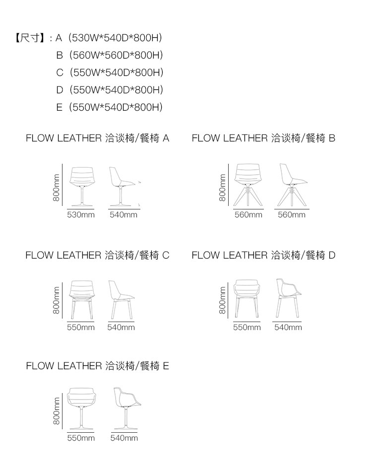 FLOW LEATHER 洽谈椅/餐椅 系列尺寸/示意图