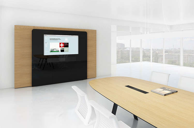 专门为视频会议所设计研发的多媒体墙,无论屏幕大小又或媒体墙整体尺寸均可根据客户需要,灵活定制(屏幕订制尺寸从65寸起订),为各种形式的演讲、沟通、视频会议提供最高效的解决方案。W4采用Holzmedia高品质材质打造,有多种配置及附件可选。并可根据客户需要,在媒体墙自带的储物柜中隐藏所有技术组件,为产品的使用和维护提供最大程度的便利。