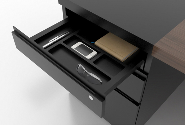 自吸式阻尼导轨,抽屉自动回位,首层含文具盘.