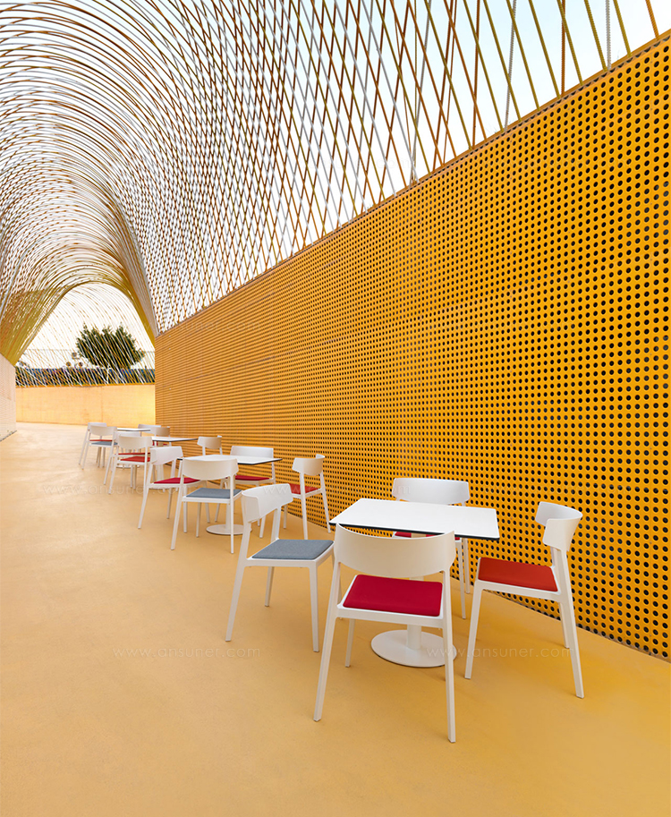 一个与环境相协调的餐桌、会议桌。具有适应个性和不同风格的能力。