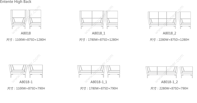 Entente High Back 系列尺寸/示意图