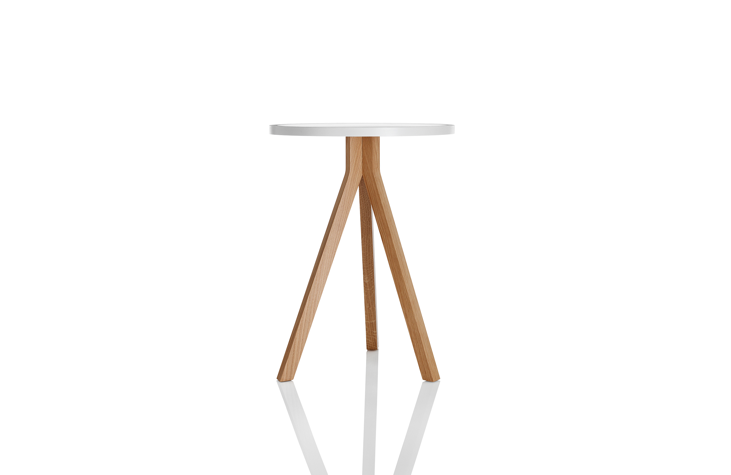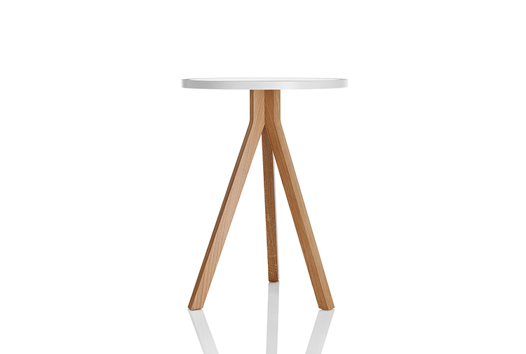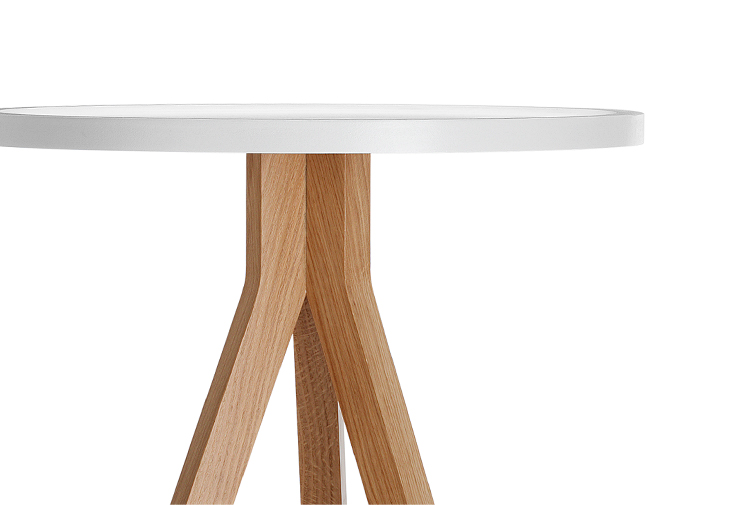 Oozing美感上的吸引力,表现在其的特点,一种大胆而又优雅的三脚式腿部设计布局,它巧妙地结合了一个带有方形边缘细节的圆形桌面。这三张桌子的每一张都采用了一种不同寻常的“效果”,这是一种7毫米的牛鼻窝设计,目的是确保物品保持在顶部表面——一种实用而优雅的设计细节,适合商业应用。