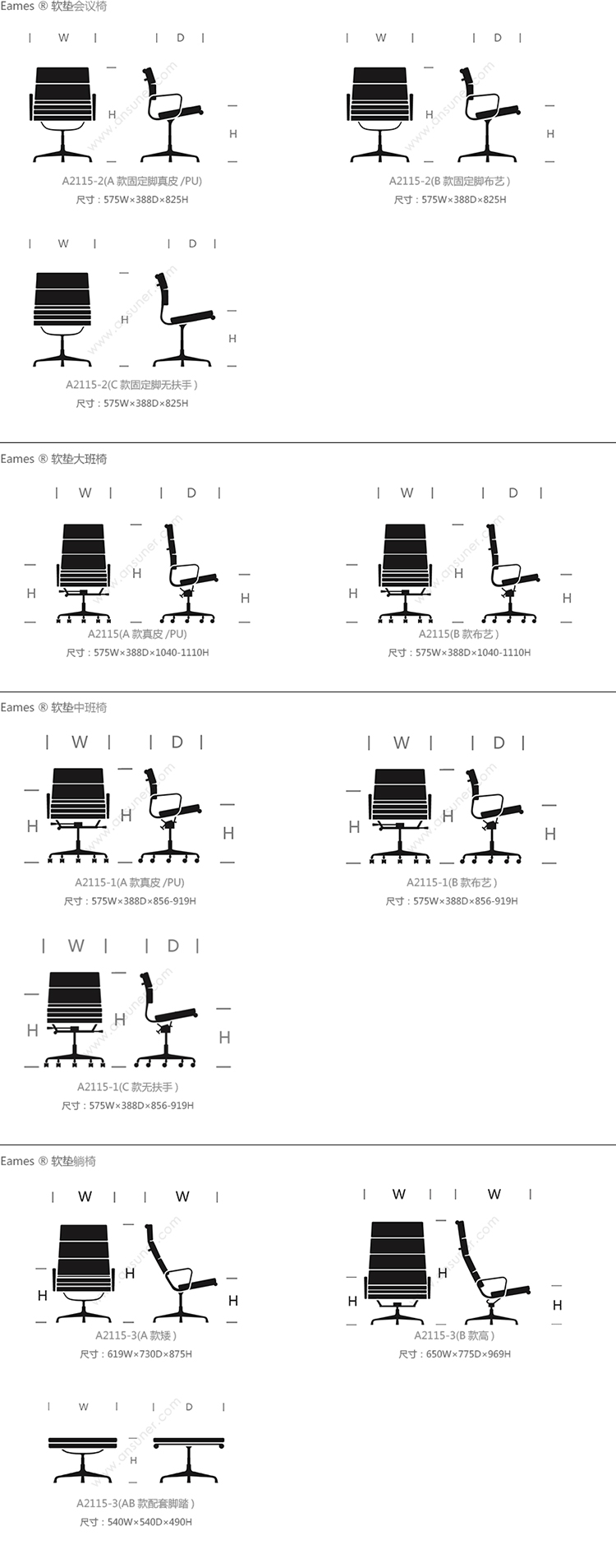 办公椅|现代真皮会议椅|办公家具|设计师家具|伊姆斯软包会议椅