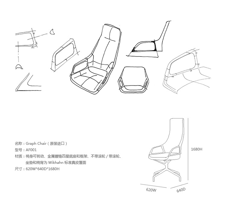 办公椅|现代真皮会议椅|办公家具|设计师家具|格拉夫大班椅