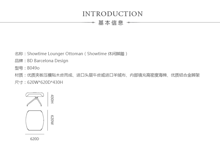 西班牙设计顽童 Jaime Hayon 2010 年在米兰家具展上再次吸引所有人的目光,Jaine Hayon 与西班牙家具厂牌 BD Barcelona Design 合作的 Showtime 系列家具自推出后俨然成为Jaime Hayon 个人的经典代表作,在 2010 年加入了新成员 Showtime Lounger 休闲椅,当中似乎不难发现有着 Charles & Ray Eames Lounge Chair and Ottoman 的影子,重新诠释这张20世纪经典椅款 Hayon 对设计大师致敬的同时,也注入更多 Hayon 幽默诙谐的设计手法。 Showtime 系列家具主要使用的材质和构造包括:优质夹板压模贴木皮而成、进口头层牛皮或进口羊绒布、内部填充高密度海棉、优质铝合金脚架。