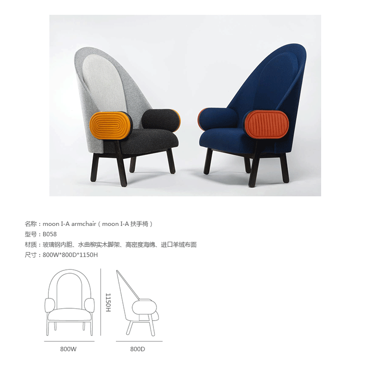 创意家具 - 坐具|休闲椅|办公家具|设计师家具|moon I-A扶手椅