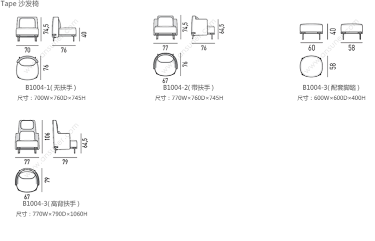 Tape 沙发椅 系列尺寸/示意图