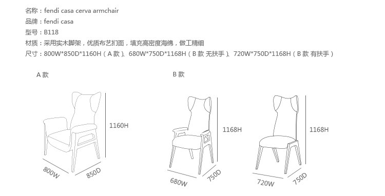 带扶手布艺 720 w|750 d|1168 h