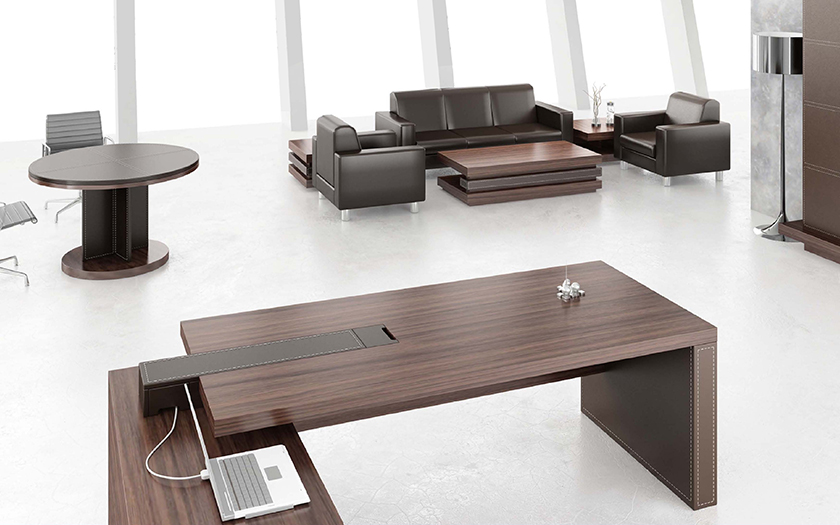 Alexandria是沉稳中带着些威严,四平八稳,有着传统的中国式的美,外形独特,个性张扬。背柜采用特殊的超薄铝合金边框,层板采用背板悬挂方式,射灯及LED灯组又增加了现代气息,威严中透着文雅气质。茶几特点突出,与班台相互协调,沉稳中带着灵性。