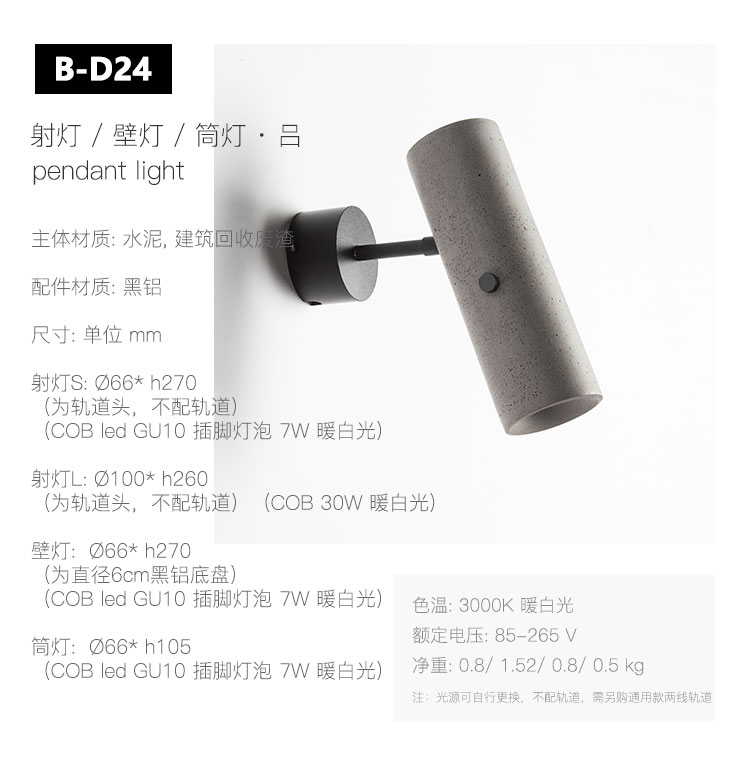 “吕”已荣获2017年iF设计大奖。 一款可替换灯源的射灯。市面上多数射灯都是一体化,不可更换灯源,若出现灯珠坏死或使用中调整瓦数,必须更换整个灯具。 采用通用的GU10接头LED灯泡,射灯和壁灯可自由调节灯源方向,可更换灯泡。射灯可用于轨道安装,壁灯可单独安装在天花上或墙面上。 混凝土之于当代城市发展有独特的意义,让这种熟悉又多元的建筑材料,回归到建筑空间去,再适合不过。
