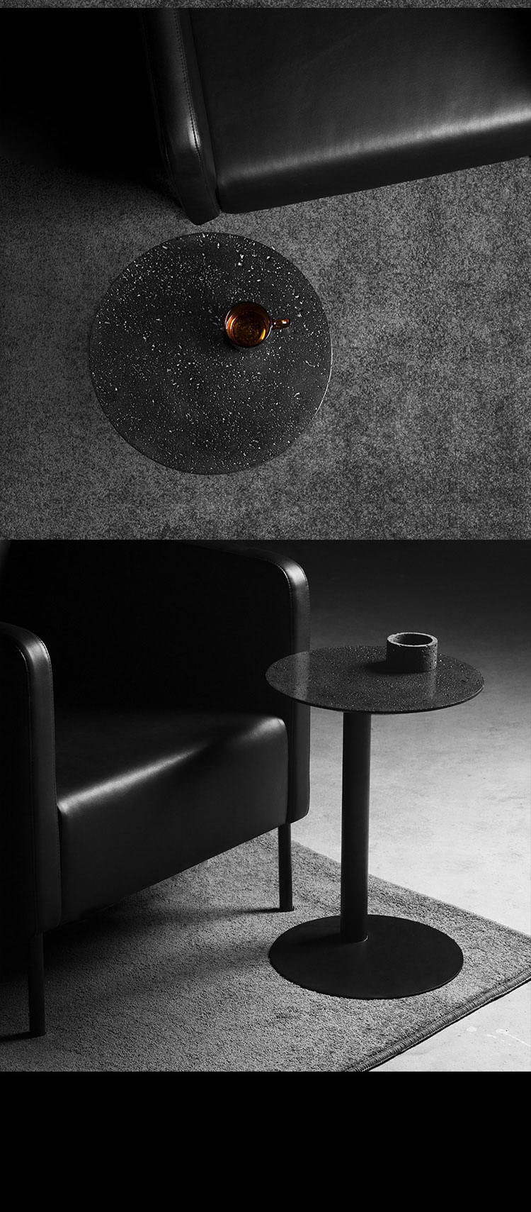 洞黑系列,洞悉秘密,来自地心的喷发。极想把洞石的芳华寂寞倾述出来,呈现于日常并使用它。尝试将洞石塑造各种形态,原材,呈浅灰色;亚光,颜色渐渐加黑;抛光,纯黑了。三种状态,魅力各异。深入践行,洞石的特性愈显,吸音、防水、防火、保温、隔热,耐酸碱、耐腐蚀、耐沾污、耐霉变,且无污染,无放射性。惊喜不断,质量很轻的洞石,居然强度很高,轻、硬,可塑性强,气孔式的通透,赋予了极简中的奢华。触目的拙,爱不释手。