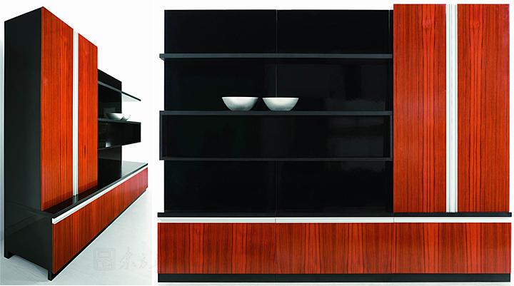 ※ 上图为班台配套的文件高柜,纯黑色底漆,搭配着银色饰边,清晰的木纹色饰面,鲜亮的效果呈现在我们我们眼前!