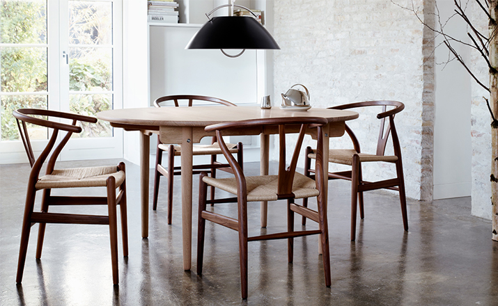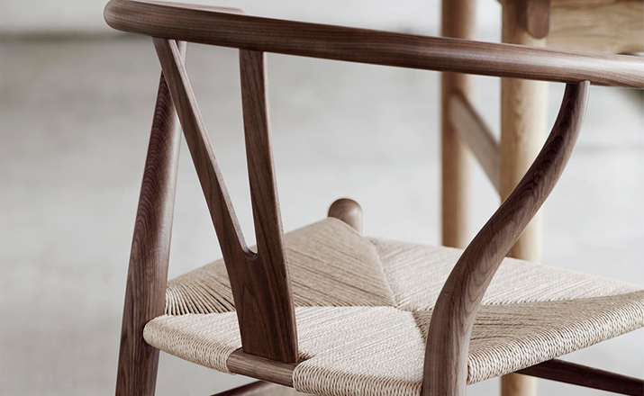 Y椅子是Hans J.Wegner最著名的作品。 它具有重量轻、有吸引力、舒适、中式风格等特点。 该款设计灵感来源于中国传统家具,四平八稳,古色古香,大气自然。上圆下方,浑然天成,深受中国顾客喜欢。Y椅关键在于是工艺与简约的设计,有着清晰的线条。 尽管椅子简约的外观要超过100个步骤进行。除其他事项外,手工编织座垫超过120米的线。 材料有丹麦硬木(橡木,榉木,水曲柳)以及北美硬木(胡桃木,樱桃木)等。外表可漆成各种各样的颜色。 垫子的座位可以添加额外的舒适。