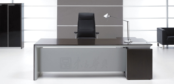 ※ 上图为班台类似款式推荐,选用20MM深邃细纹特质的铁刀木台面,辅以斜边青灰色砂纹台托,在转角内收处形成具有锐利风格的棱边,凸显简约风格!