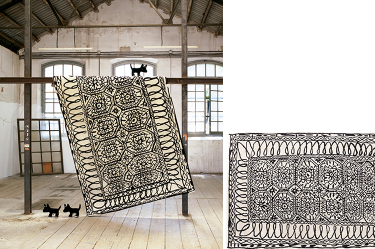 这张地毯最初的草图是由Mariscal在1987年绘制的水彩画。这个设计传达了经典波斯地毯的基本轮廓。利用这一概念作为起点,设计采用独特的模式更新,让人联想到漫画,综合东西方,将传统工艺和当代设计放在一个产品中。
