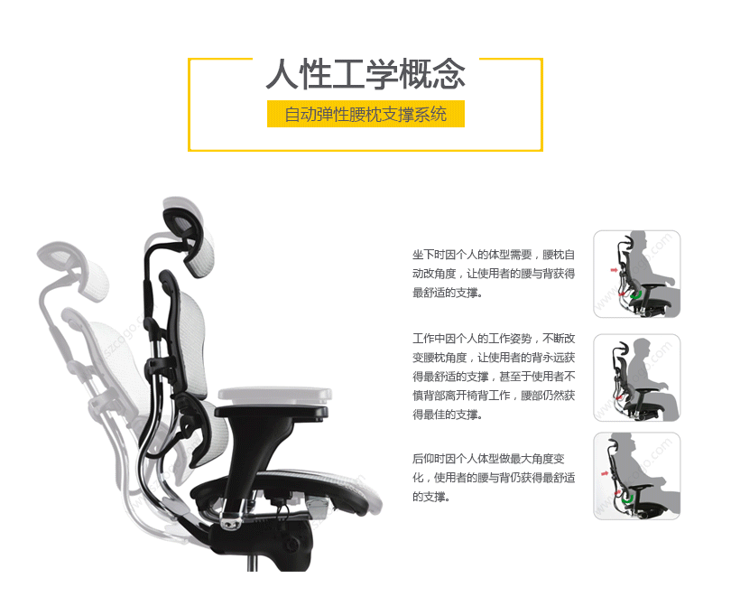 首选专业人性工学椅,保护您的腰;倍受董事长、高阶经理人青睐;商务大气,适用于会议室等商务场所;荣获众多国际影视拍摄使用;全球销量累积超过350000张。"