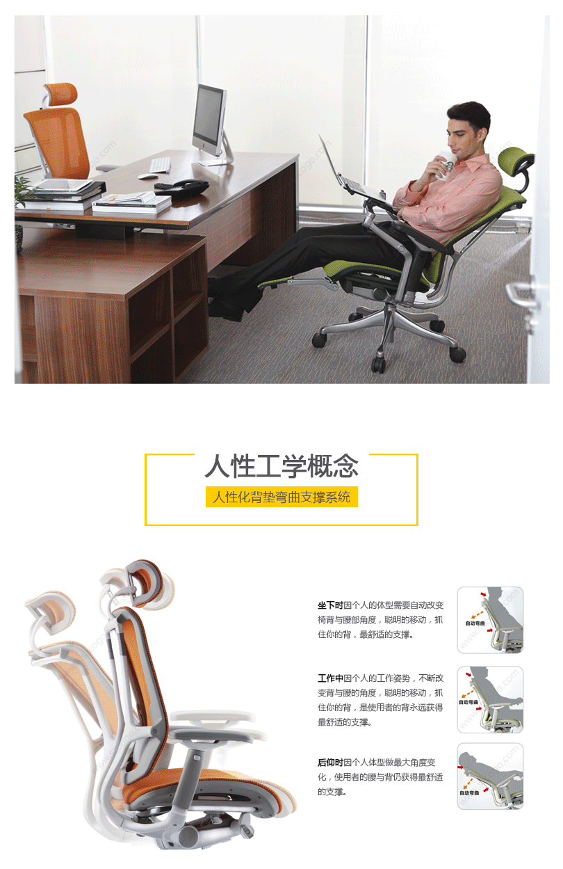金典系列产品灵活度高,外观设计时尚,通过单杆操控多功能调整系统,使操控简便更人性化。优良的设计及精湛的力学与工学设计概念与一身,金典系列产品设计居于办公座椅行业前列,智慧移动腰背支撑系统,你怎么动他就怎么动。