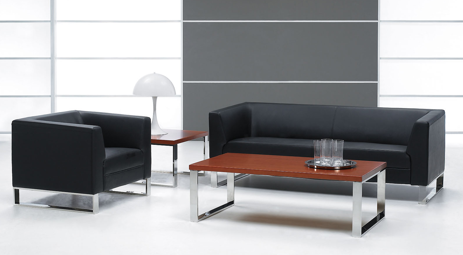 ※ 上图为休闲区域沙发和茶几的产品推荐,简洁、流畅造型,搭配清新爽洁的色调,营造一种全新的休息环境。