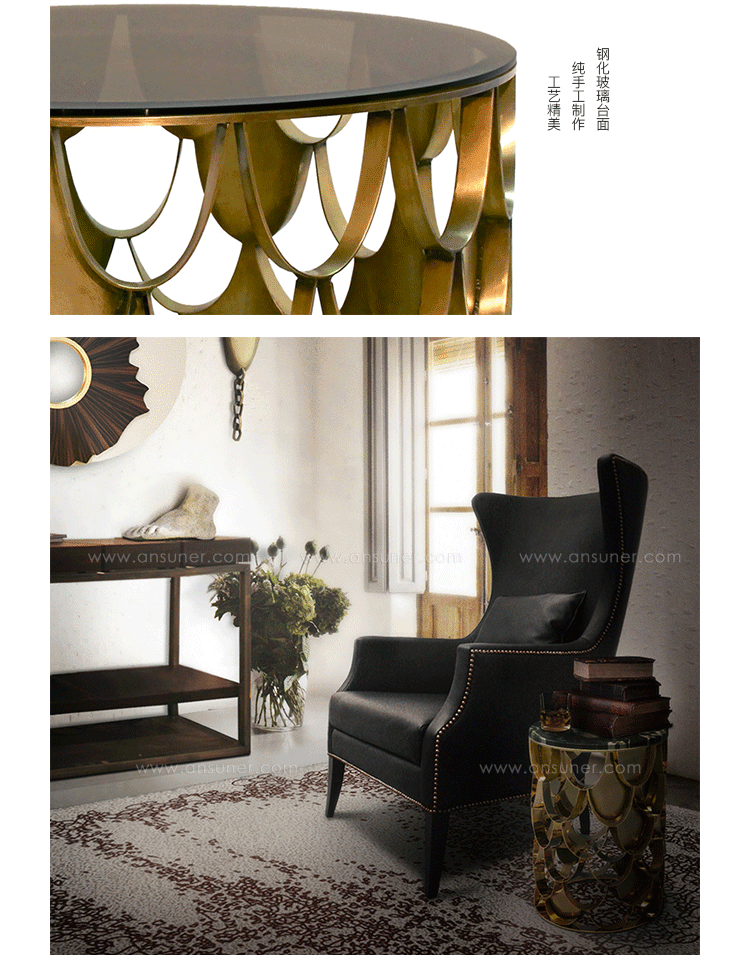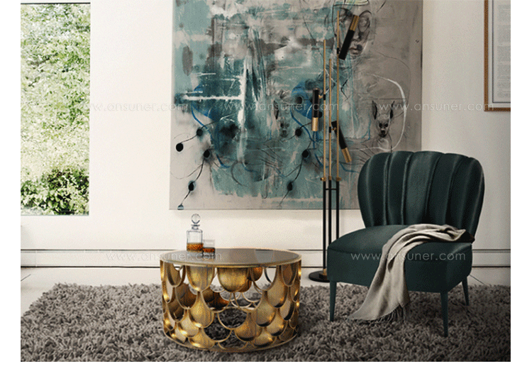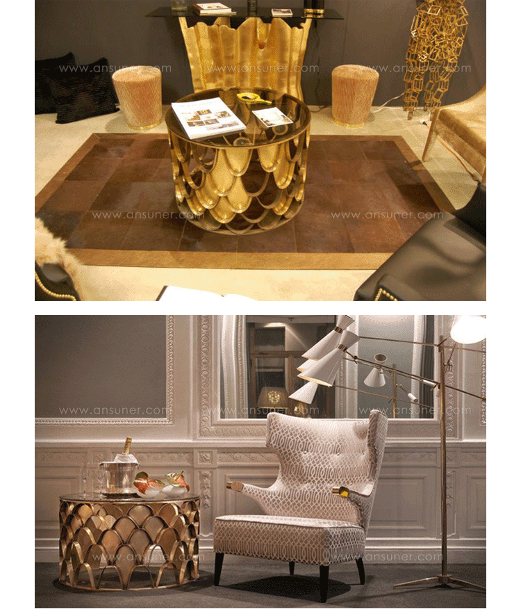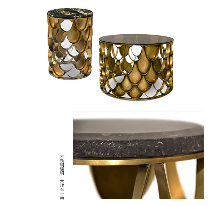 锦鲤,日本文化的象征。边几反射光泽,如在清水中,供玻璃和大理石桌面,更好的适应环境.