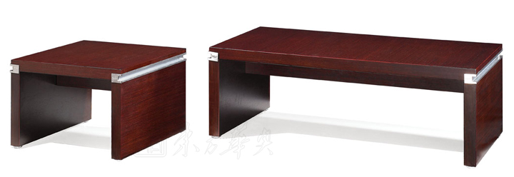 ※ 上图为系统推荐配套方形茶几和长形茶几,方正造型,台面和台脚采用凹形铝合金饰边,形成厚与薄,深与浅的对比视觉,简约而经典,台面木纹采用横纹方向,正是欧美流行设计。