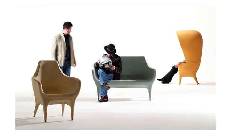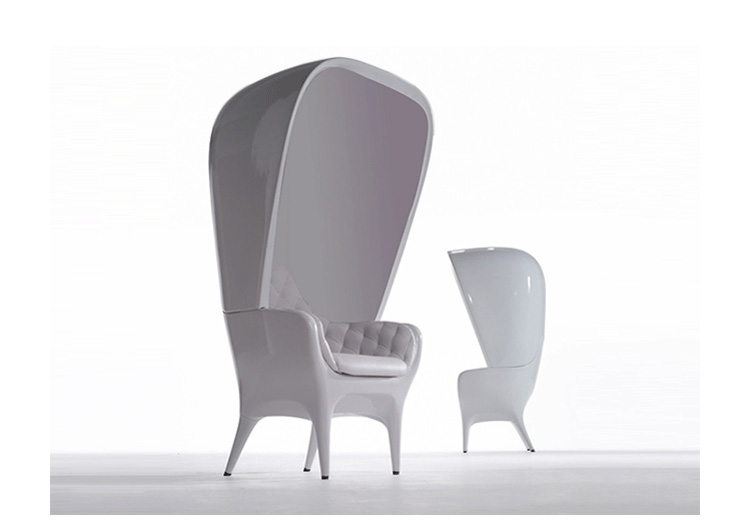 Showtime Hooded Armchair沙发系列是 Jaime Hayon 受邀与西班牙顶尖设计家具公司 BD Barcelona 合作推出的精品级艺术家具系列,灵感来自于米高梅歌舞剧场景,从单人沙发、双人沙发 发展到最具趣味性的圆顶高背沙发椅,让人坐进去就像是身处于古代欧洲戏院的包厢中,而外面的人只能看到一双伸出的腿,充满戏剧性的设计,不仅多了一份神秘感,,更令人不禁莞尔。