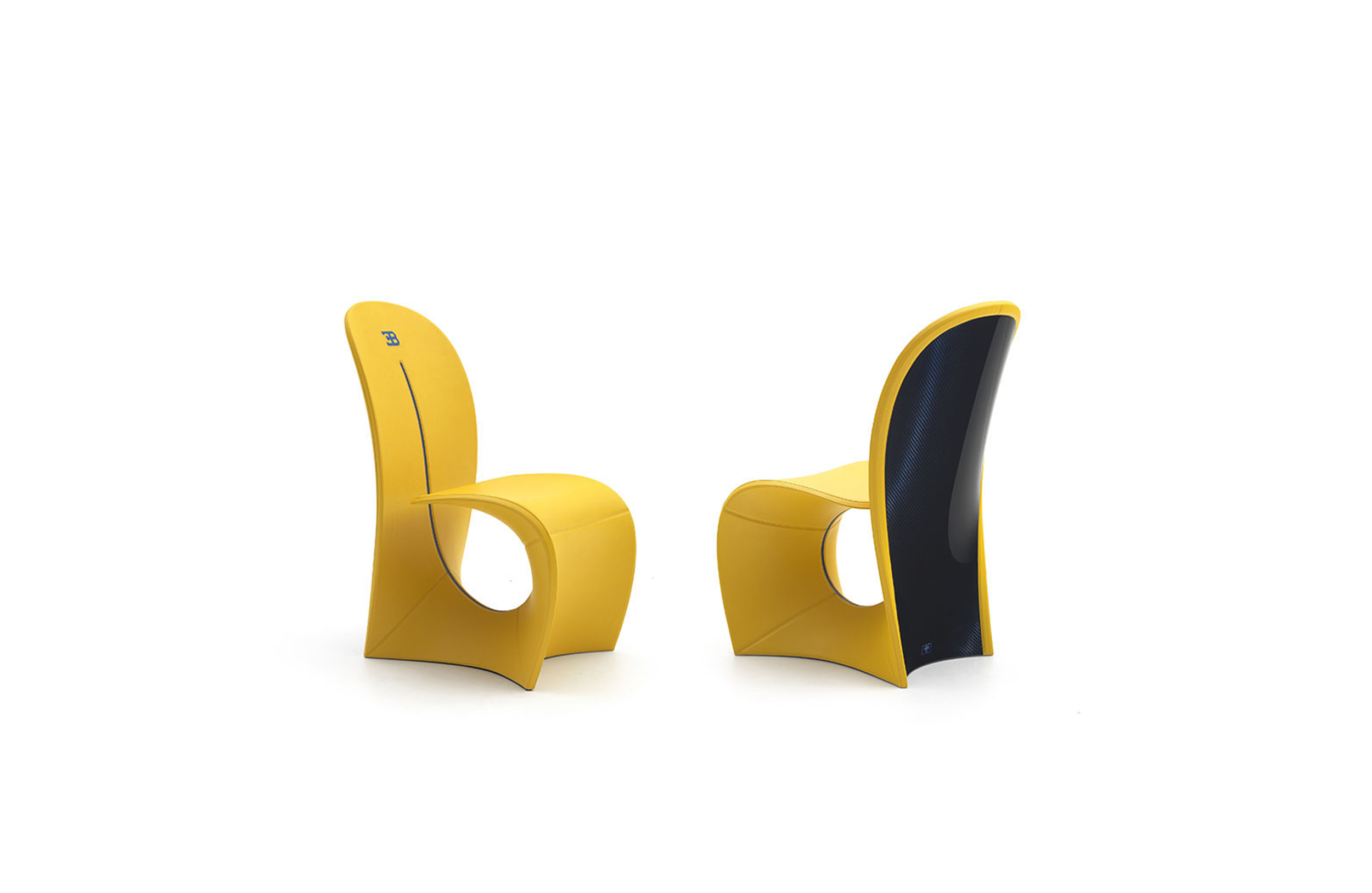 眼镜蛇座椅重现了早期的版本,它是在1902年由Carlo Bugatti设计并完成的。这把椅子是用干邑皮革制成的,有一种蓝色罗亚尔色的碳纤维框架。在蓝色皮革管道和EB字母组合中也有装饰。
