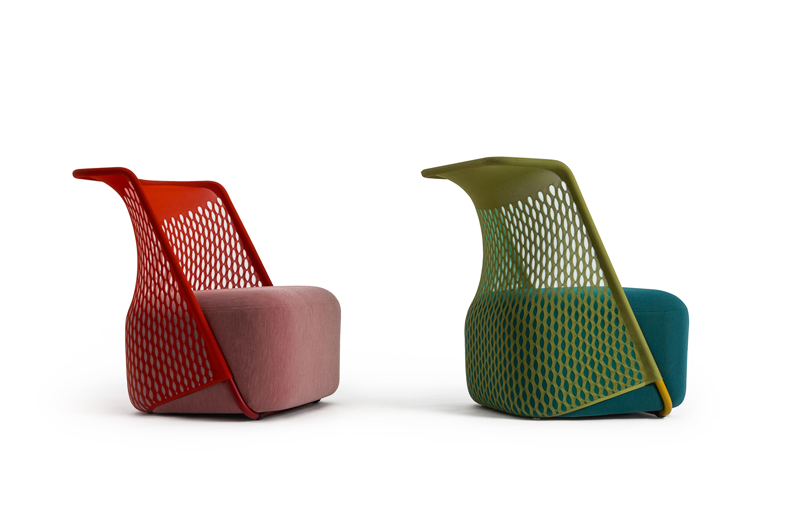 “摇篮”是两种类型座位的独特组合;一个网状结构吊床和一个传统的软垫沙发椅。扶手椅源于工作室的材料驱动、工艺主导、工业设计方法、网格材料的构建研究,以及传统座椅组件之间的关系研究。“摇床”采用了一种定制的剪裁模式,允许非弹性织物以三维的方式进行。这允许正确的张力,舒适地支持身体和视觉上和身体上减少产品的重量。