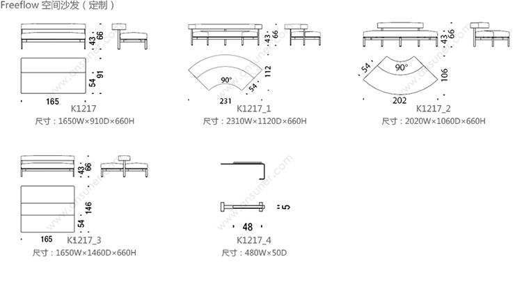 Freeflow 公共沙发 系列尺寸/示意图