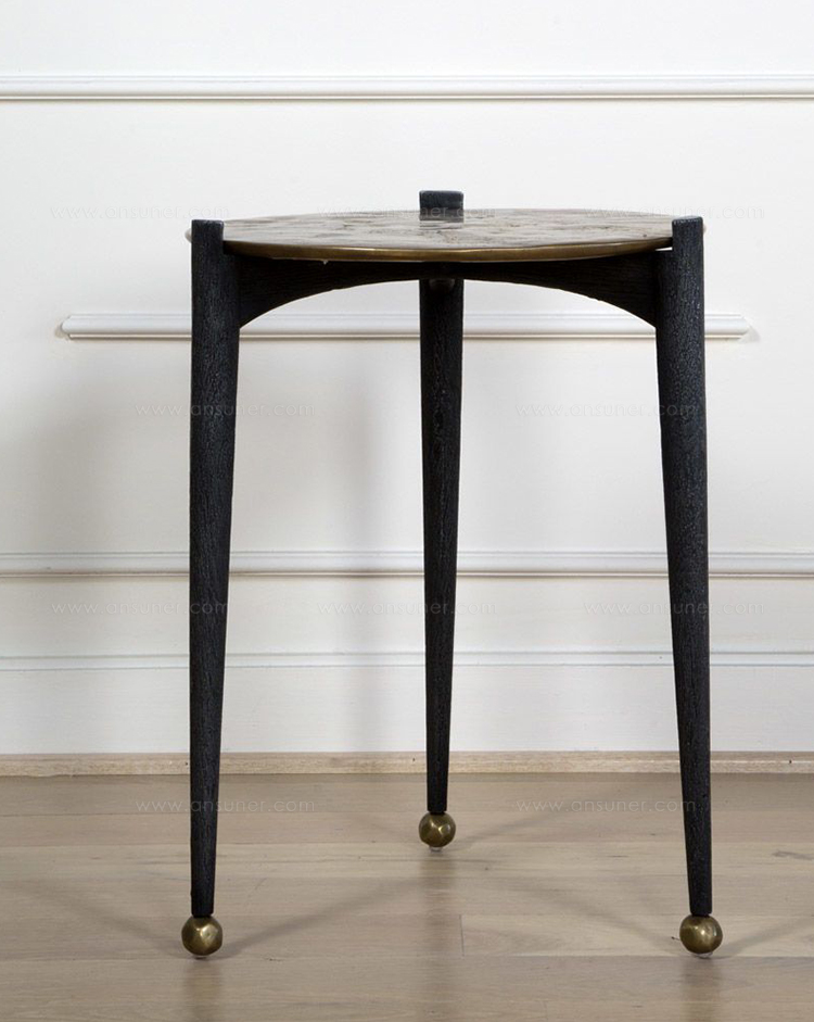 可能是我们所有边几中最复杂的,Garcon桌子有三条腿用黑色铝铸造,逐渐变成黄铜球脚。 腿部的纹理就像雕刻的木头和坚固的青铜顶部,带有抛光的青铜色,具有手工锻造的雕塑品质。